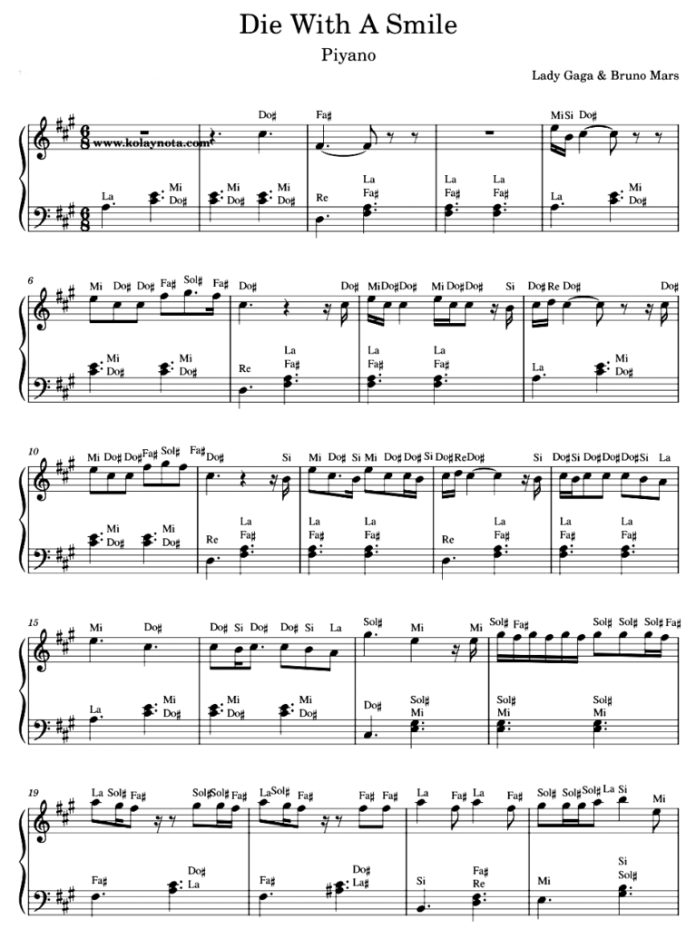 Lady Gaga – Bruno Mars – Die With A Smile Piyano, Melodika, Do Re Mi Notaları
