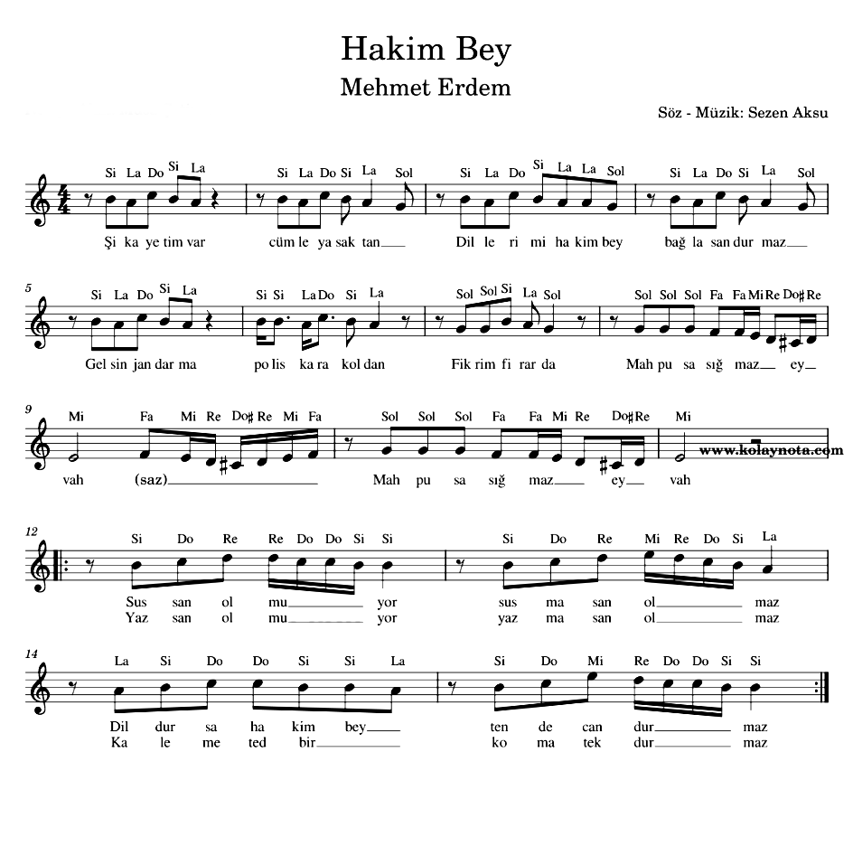 Mehmet Erdem - Hakim Bey Piyano, Melodika, Flüt, Org, Ud, Bağlama Do Re Mi Notaları